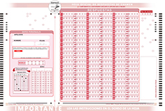 Impreso anónimo con 120 preguntas, 4 opciones de respuesta y anulación.