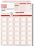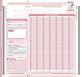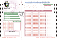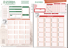 Impreso anónimo con 120 preguntas, 4 opciones de respuesta y anulación.